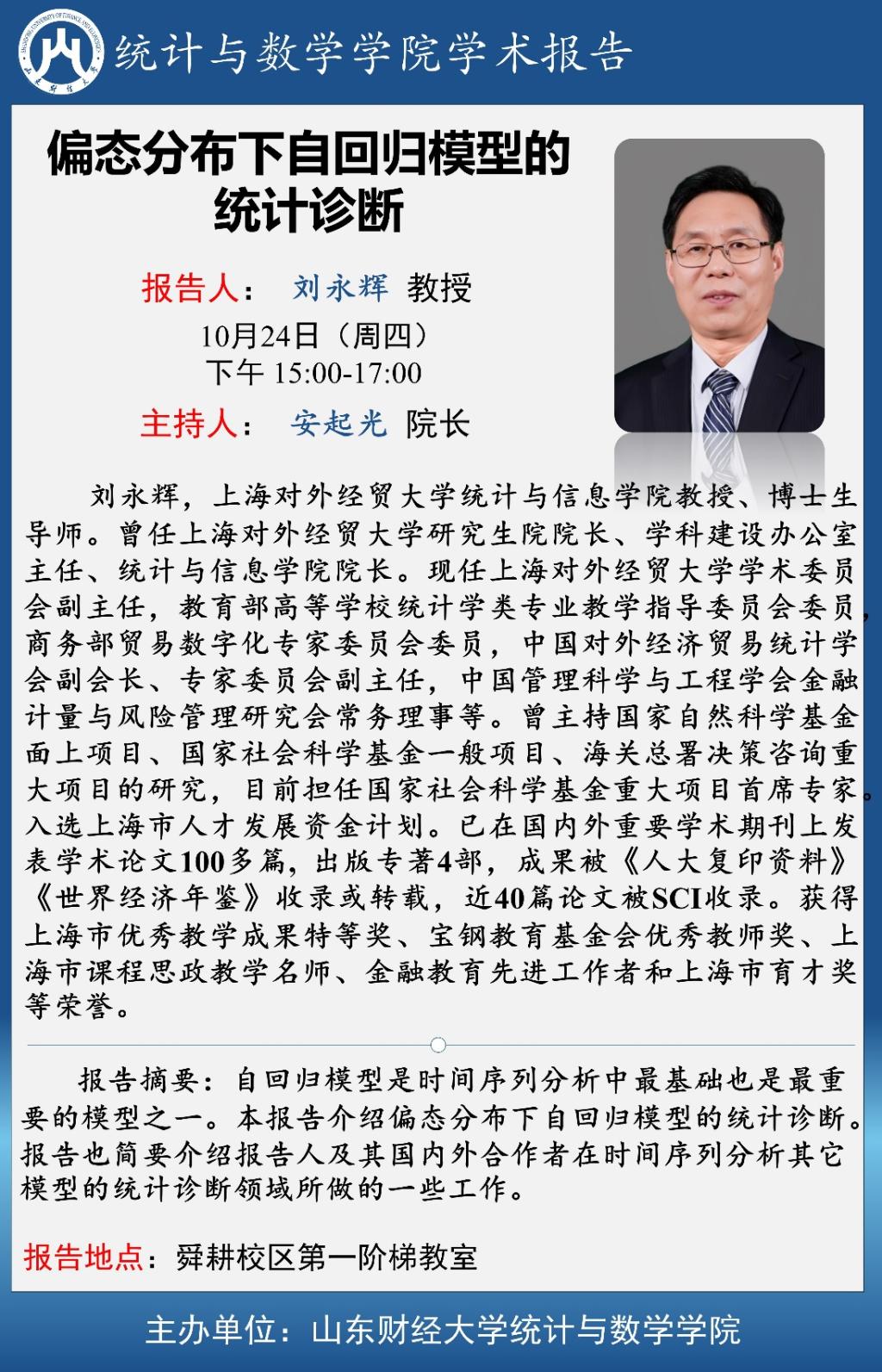 博彩平台网址大全 学术报告预告-偏态分布下自回归模型的统计诊断
