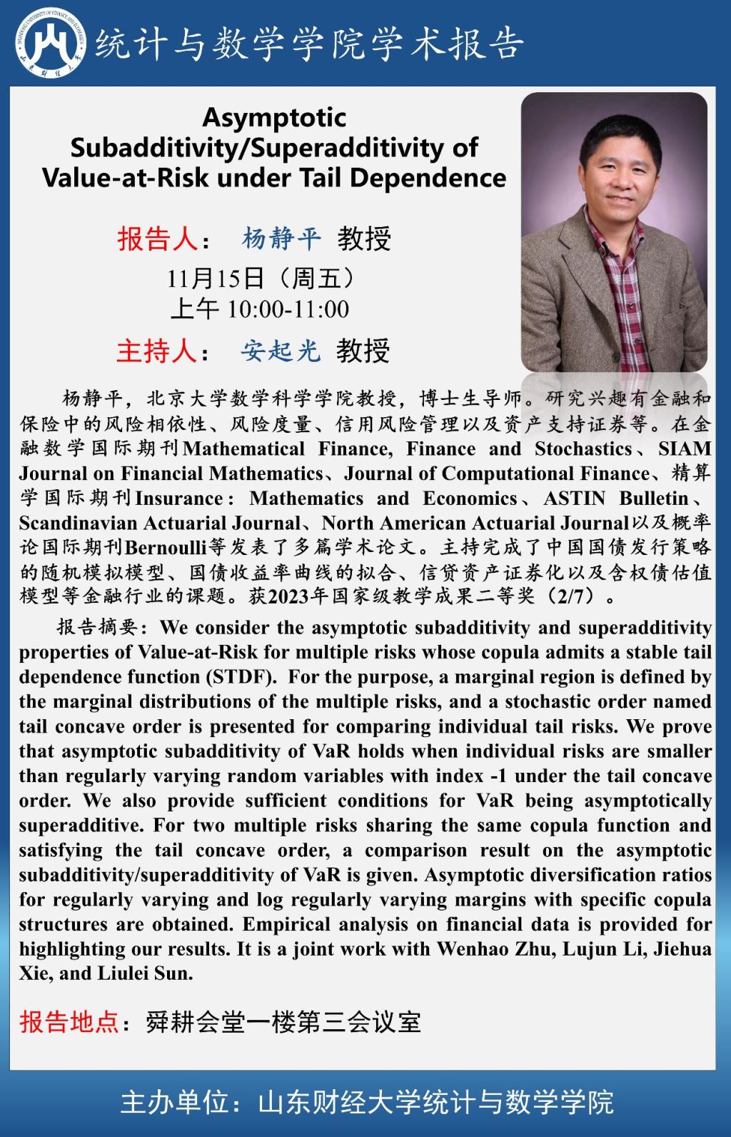 博彩平台网址大全 学术预告—Asymptotic Subadditivity/Superadditivity of Value-at-Risk under Tail Dependence