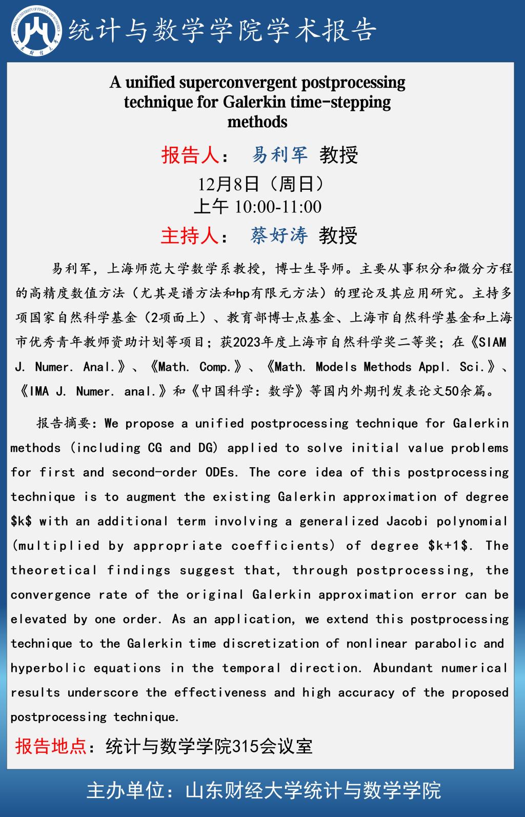 博彩平台网址大全 学术报告—A unified superconvergent postprocessing technique for Galerkin time-stepping methods