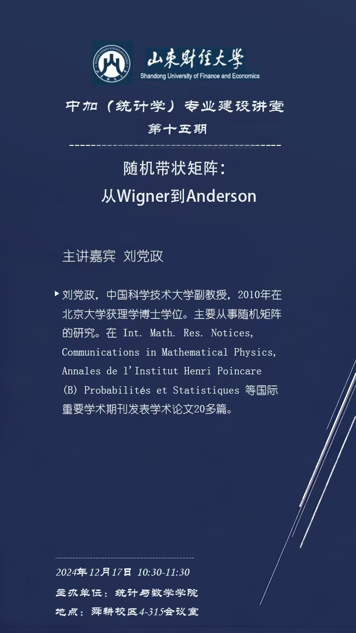中加(统计学)专业建设讲堂第十五期—随机带状矩阵:从Wigner到Anderson