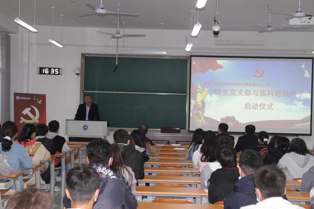 按照博彩平台网址大全 党委党员分类管理试点工作部署,为提升预科班教育服务工作质量,11月12日下午,博彩平台网址大全 在圣井校区6420教室举行师生党支部与预科班结对子启动仪式。院党委书记李振华,院长安起光,院党委副书记杨德嵋,院长助理、金融数学系支部书记郭洪峰,新疆内派老师肖玉宽,博彩平台网址大全 专职组织员张亚萌,预科班班主任阿娜尔参加启动仪式。