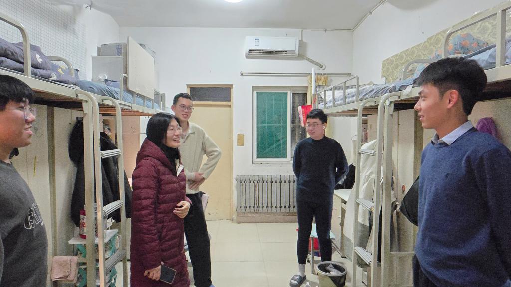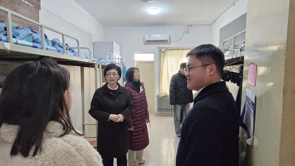 走访过程中,齐杨逐一走进学生宿舍,与同学们进行了亲切的交流。“假期过得怎么样?”“返校后生活上有没有什么困难?”“新学期的学习计划制定好了吗?”每到一处,她都详细询问同学们的假期生活、返校适应情况以及新学期的规划,耐心倾听大家的心声与诉求。她勉励同学们要尽快调整状态,从假期模式切换到学习模式,以饱满的热情和昂扬的精神面貌投入到新学期的学习和生活中去。