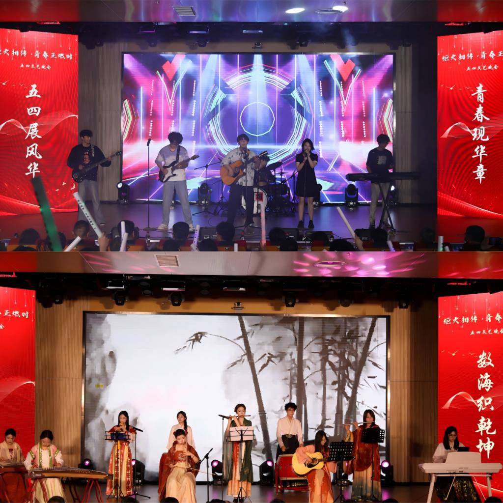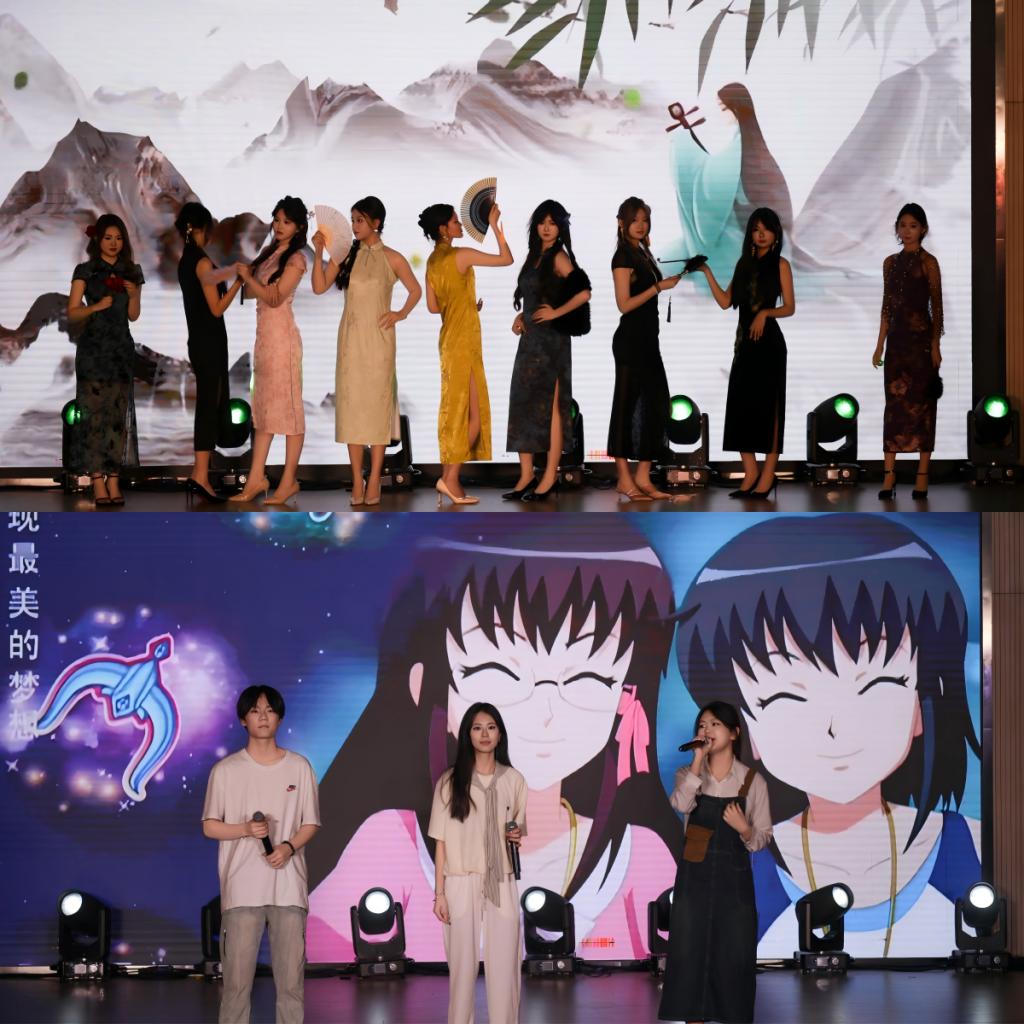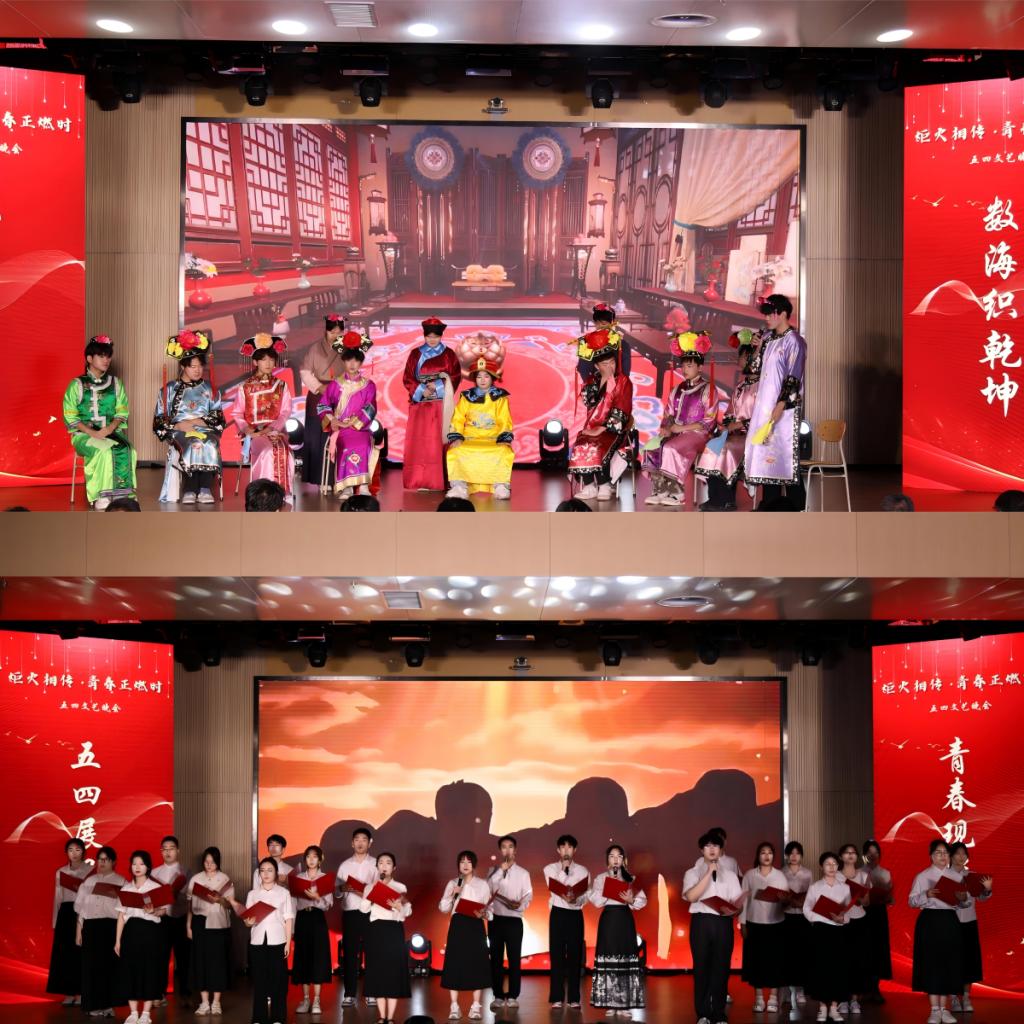 本次晚会亮点频出,精彩纷呈!开场节目乐队表演《不再犹豫》,以铿锵音符叩击心弦,激昂旋律如春雷破冰,瞬间点燃全场热情,揭开了晚会序幕。审艺堂带来的舞蹈串烧《Hello miss》,每一个舞步都充满活力,每一个跳跃都充满欢乐。南山月带来的相声《曲韵之声》,妙语连珠,以传统曲艺为底色,让传统艺术焕发新生机。歌伴舞《左手指月》,歌者空灵嗓音与舞者翩跹水袖交相辉映,将中国风美学演绎得淋漓尽致。武术《袖里乾坤》,柔中带刚,传递青年态度。器乐合奏《双面燕洵》,不同乐器的配合天衣无缝,让人回味无穷。舞蹈串烧《What makes you beautiful》,释放青春的活力,领略舞动的魅力,在舞台上一起绽放光彩,感受舞蹈带来的无尽魅力!小品《甄嬛传之外卖风波》,看后宫佳丽如何在现代外卖江湖中斗智斗勇,开启一场别开生面的爆笑之旅!模特的精彩走秀《五四风华,旗袍韵影》,展现了学子们的自信和昂扬,凸显了中国年轻人对中华优秀传统文化的传承精神。童年金曲串烧《童年同young》,熟悉的旋律,童年的回忆,穿越时光,重温了那些年的纯真与快乐!小合唱《第一天》,“永远那么灿烂”每一个音符都充满活力与希望,每一个音调都充斥着对生命的热爱。统计中加专业带来情景剧《春至》,紧握时代脉搏,既敬仰先辈,又感恩新时代的安定幸福,洋溢着浓烈的爱国情怀。民族舞《民族风采在鲁乡》,以民族舞为载体,象征民族团结之花在齐鲁大地盛开,展现出了民族和谐共处的美好景象。朗诵《祖国啊我亲爱的祖国》,泱泱华夏,漫漫其道,让红色基因融入血脉,用声音传递炽热情怀。最后,博彩平台网址大全 领导班子成员与师生合唱《不忘初心》,初心呼唤担当,使命引领未来,博彩平台网址大全 全体领导老师矢志不渝地以培育德才兼备的社会主义接班人为己任,用责任与智慧铺就学子的光明前程,以创新与实干构筑博彩平台网址大全 发展的康庄大道,为高等教育事业注入源源不断的生机活力。
