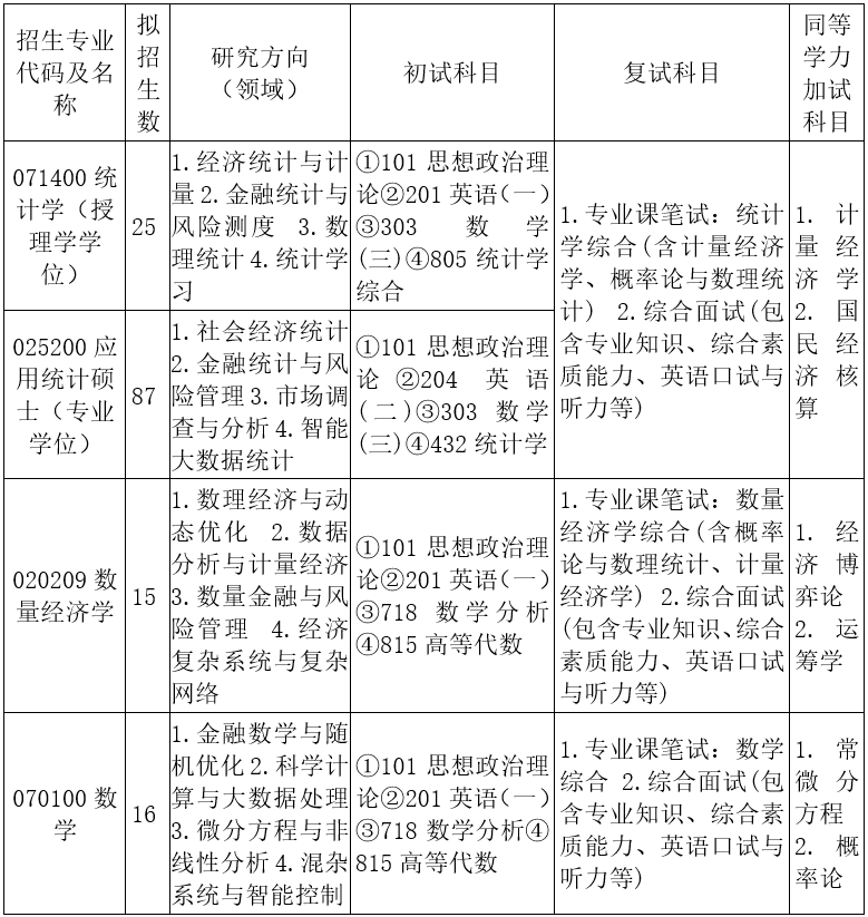博彩平台网址大全 现设有五个硕士学位授权点:1996年获批统计学硕士学位授予权,是山东省高校中第一个统计学硕士点,2010年调整为一级学科硕士学位授予权;2002年获批数量经济学硕士学位授予权;2010年全国首批获得应用统计专业硕士(MAS)学位授予权;2012年增设金融统计学硕士学位授予权;2022年获批数学硕士学位授予权。现设有统计学一级学科博士学位授予权,2013年于应用经济学一级学科下设经济统计理论与方法二级学科博士学位建设点,2018年获批统计学一级学科博士学位授予权,2024年获批统计学中外双导师联合培养博士研究生专项计划。2023年获批统计学博士后科研流动站。