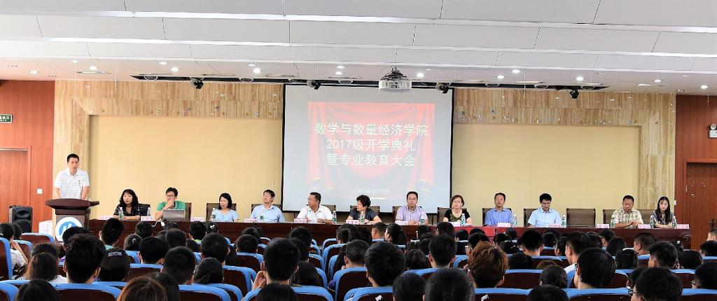 2017年9月13日上午9:00,博彩平台网址大全 在圣井校区敏行楼报告厅召开2017级新生开学典礼暨专业教育大会。博彩平台网址大全 院长安起光,党委书记王建香,副院长刘贵基、郝秀梅、刘太琳,党委副书记赵连幸,应用数学系主任孟宪萌,金融数学系副主任郭洪峰,教师代表苏园,团委书记王昊天,就业办主任张亚萌,辅导员燕文静、王京姝出席典礼,典礼由刘贵基老师主持,2017级全体新生和部分2016级学生代表参加。