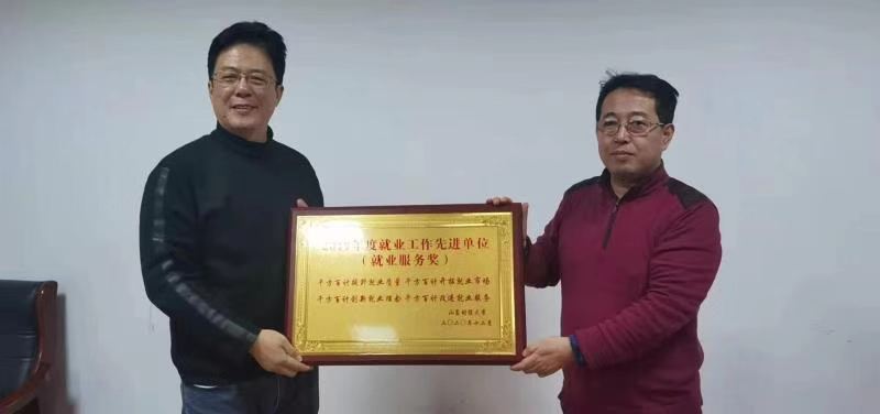 杨哲为博彩平台网址大全 颁发了“2019年度就业工作先进单位(就业服务奖)”奖牌,为王京姝颁发了“2019年度就业工作先进个人”奖杯。