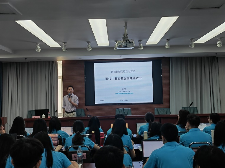 吴喜之通过互动式教学,讲述了R语言编程以及机器学习中决策树、随机森林等算法,与学员分享了机器学习中的交叉验证方法。陈强详细讲授因果推断的原理和最新方法,包括因果推断基础、最新两期DID及交叠DID方法等因果推断最前沿的研究内容。彭红枫通过自身经验与大家讲述了撰写高质量论文的几点经验,与学员分享了发表的高质量期刊论文,并从论文选题及撰写过程进行了详细说明。郝涛就关键词、引言、正文、参考文献等期刊论文投稿要素做了详实的专题讲解,以期帮助学员快速了解期刊论文投稿注意事项。王丽萍对学校研究生学术规范相关文件进行解读,结合实例强调学术道德和学术规范的重要性,呼吁学员在科研道路上提升自身学术素质,严格遵守学术规范。