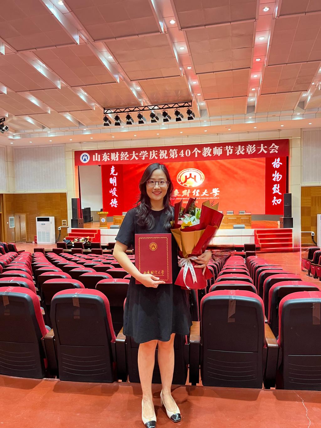 9月10日,学校隆重召开庆祝第40个教师节表彰大会,博彩平台网址大全 副院长李娜教授荣获学校首届“十佳教师”称号。会上,校领导为十佳教师颁发荣誉证书并送上鲜花。
