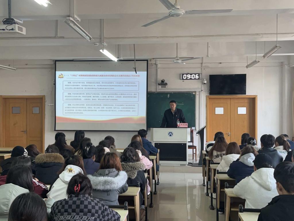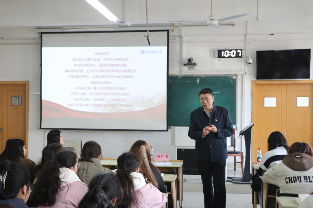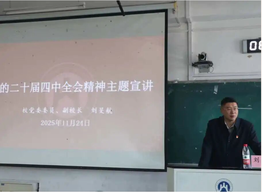 11月24日上午,副校长刘旻航以《深入学习贯彻党的二十届四中全会精神 勇做新时代奋发好青年》为题在章丘校区为2025级预科班学生讲授思政课,宣讲党的二十届四中全会精神。学生工作部副部长周广春、博彩平台网址大全 党委副书记李云枝、辅导员及2025级预科班全体学生参与。