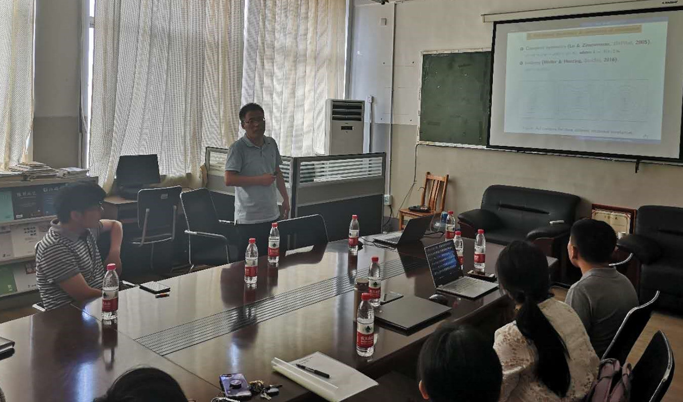 张世斌教授报告的主题是“基于不规则间距空间数据的空间相依旋转不变性与各向同质性检验”。本报告引入了协方差函数旋转不变性的概念,该概念与方向对称性与各向同质性具有紧密联系。报告引入了一个检验旋转不变性的检验统计量和用于检验各向同质性的另一最大值检验统计量。这两个检验统计量不仅具有优良的性质,而且在模拟实验中表现良好。