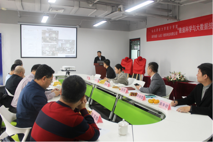 为进一步强化校企合作办学,推动产学研深度融合,2020年10月16日,山东财经大学统计博彩平台网址大全 与高寻真源(山东)教育科技有限公司举办关于“数据科学与大数据技术”“统计学专业”校企合作签约仪式。山东财经大学统计博彩平台网址大全 党委书记郑磊、院长李国锋、党委副书记赵世民、副院长裴海峰、实验室主任任文东、数理统计系副主任戴洪帅以及高寻真源(山东)教育科技有限公司执行董事张欣、副总经理韩帅、副总经理徐冉、运营管理中心经理田瑞雪、技术研发中心主管田丰收、售前工程师杨文雅等参加了此次签约仪式。仪式由高寻真源(山东)教育科技有限公司副总经理徐冉主持。